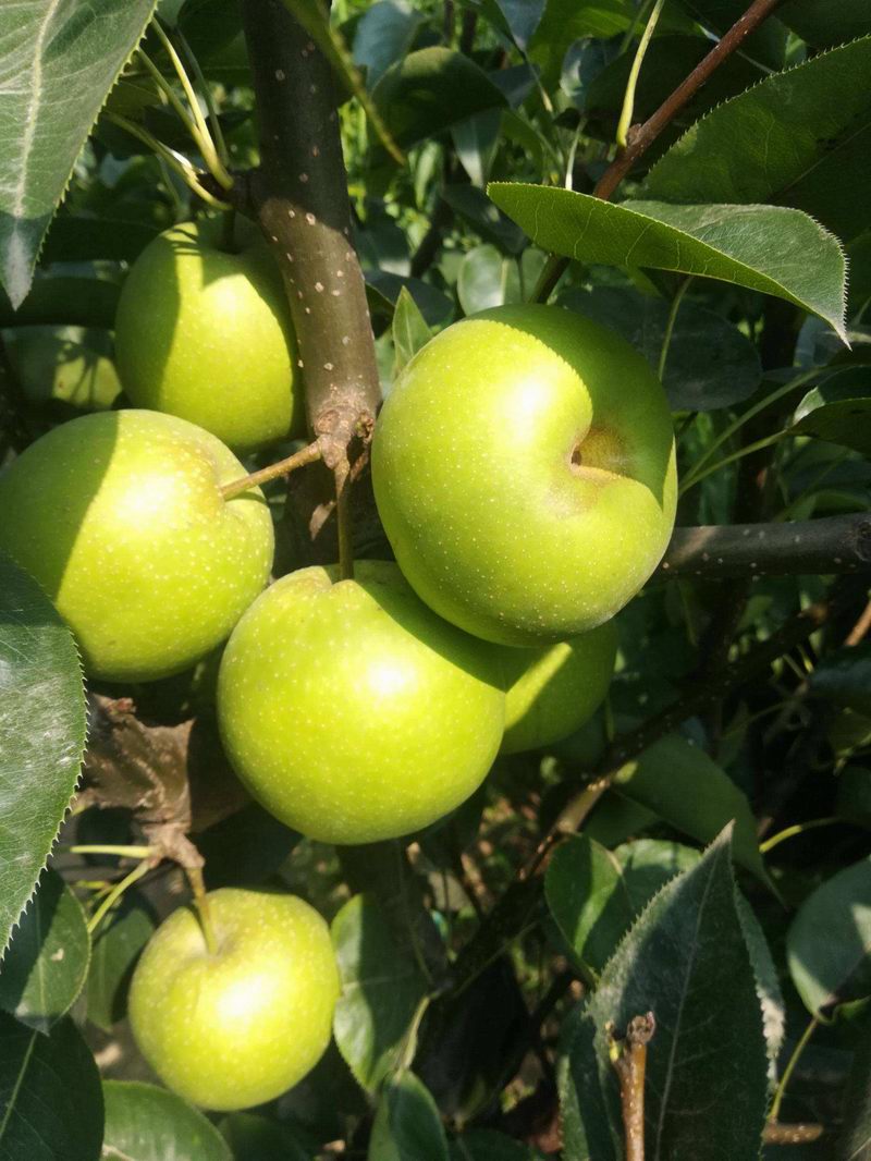 蘇翠一號是江蘇農科院用翠冠梨做父本和華酥梨做母本雜交而成的早熟優(yōu)質(zhì)梨品種,綜合彌補了二者優(yōu)點(diǎn),做到了果肉甜脆且果面光滑無(wú)果繡。蘇翠1號在魯南地區的成熟時(shí)間為7月中旬,果實(shí)卵圓形,平均果重270克,果面平滑臘質(zhì)多,果皮黃綠色,果肉白色,肉質(zhì)細脆,石細胞極少,汁液多味道甜,貨架期半個(gè)月,可以自花授粉。